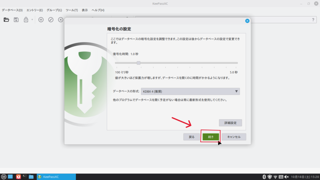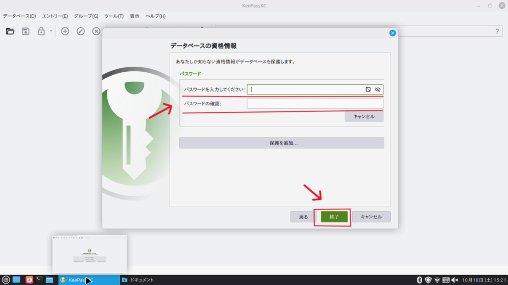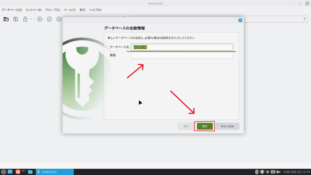 (このパスワードを忘れると KeePassXC に登録した全ての ID・パスワード が使えなくなるので、紙に書くなどして大事に保管してください。)